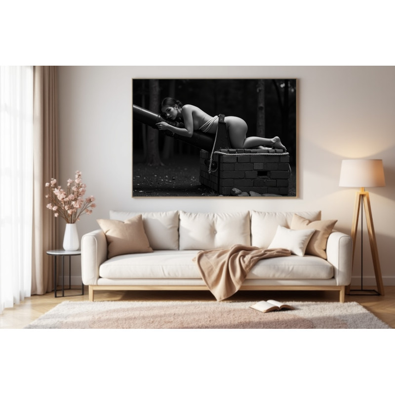 Провокативна фотокартина з оголеною жінкою та артилерійською гарматою. Ідеальна для сучасного інтер’єру у стилі лофт.